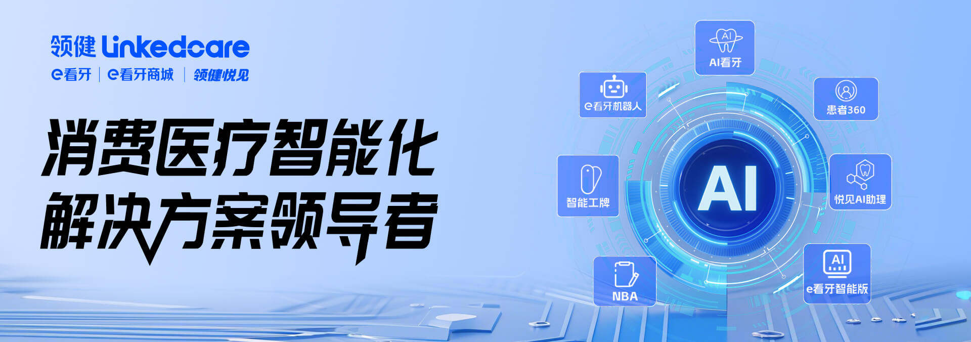 “领健,引领中国口腔健康的先峰!旗下的e看合作客户已经超过四万余家。我们坚定地与代表中国最先进科技企业站在一起,有幸成为与e看牙合作的口腔门诊部之一。陪伴成长,合作共赢。”